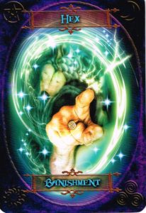 Hex comes as a warning sign for you to be wary of unwanted energies that are being directed your way. Whether you have felt drained as of late or have experienced a prickly feeling, you can be sure that when Hex turns up you have some vital banishing to do. Be sure to check in with your feelings so that you can determine what or who is sucking the lifeforce out of you or directing negative energy your way. Do not be fearful- instead be strong and turn any negativity into positive personal power. This is a time for you to take a stand and to say “no more”! Look more deeply into situations and don’t take so much on face value. Tread carefully and keep watch for enemies who lurk in the shadows. Your discernment right now gives you a Second Sight. So trust your instincts and go for the kill. Hex urges you to release, get rid of, and banish anything that prevents you from walking your true path. You are protected when you heed this omen. Ignore it at your peril.