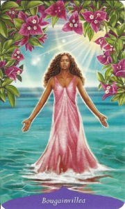 Like the daylight-drenched soil and saltwater shores that characterize her natural habitat, bougainvillea counsels you to let yourself be spiritually, emotionally, and physically purified and cleansed. Relax, breathe, and open your heart, body, and mind to the bright golden-white sunlight of Spirit. See it bathe every cell as it burns away and transforms all darkness, heaviness, confusion, and depression into pure positivity, clarity, love, and light.