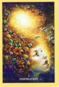 This oracle also comes with the message that you are a vehicle for inspiration. You are meant to think and do things differently. You are capable of receiving fresh ideas that are not so “out there” or different that they stop being practical, helpful and wonderful. You are being asked to avoid the trap of doubting your ideas are special or interesting enough. Your inspiration comes direct from the universal creative source and you are being asked to believe and recognize the signature of great intelligence within your inspirational ideas and creative urges – and to act accordingly. To sum up, this card indicates that sweet success, like abundant honey, is coming your way through commitment to and development of an idea that you have already had or will soon receive. See it through to the end. Bee-lieve!