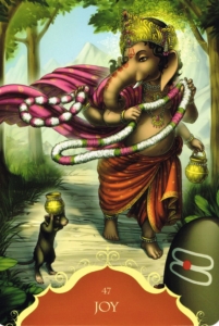 Through this card, Ganesha acknowledges your stress and exhaustion as you work to adapt to new patterns of behavior and release your old stories. You may not be happy right now, but you can experience joy in knowing that striving through a difficult situation is important. You are urged to realize that you came into this lifetime to undergo certain experiences and to learn very specific life lessons.