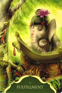 The image of Ganesha reading the scroll is a symbol of the importance of education and the pursuit of knowledge. This might mean there is a period of increased study and learning at hand. You may find you want to inquire about a field of study that has been widely explored and choose to go to an experienced teacher to learn more.