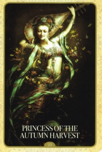 The Princess of the Autumn Harvest brings gifts of bounty and blessing for efforts and actions of the past. It is a time when fruit of labors is ripe for the picking. A beautiful blessing is on its way to you now. This may come in the form of a spiritual gift, an opportunity, a windfall of abundance, a significant relationship or an important friendship and more. With gratitude in your heart, you will recognize the blessing when it comes to you and it will serve you perfectly. Be open to receive it, knowing it is justly deserved.