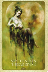There comes a time to extract the pure thread and cast aside that which is unusable. You are at a point, beloved, where you must choose to empty out old emotional baggage and take forward with you the gifts, skills, wisdom and talents you have developed throughout many lifetimes so that you may move into the new cycle that is calling you forward. Sometimes that can feel very unfamiliar and cause us some anxiety as we do not have the old emotional and behavioral patterns to hold on to as we go through life. Yet there is no need to be fearful of this process because as you release the old, a beautiful new patterning will be emerging from within you. You will have new emotions, new ways of being available to you, born of your past experiences, but not limited by them. Kuan Yin, mistress of spinning the spiritual silk, is with you and the process can be filled with peace, joy and love. You will feel lighter for this process, and more able to be your divine Self in all parts of your life.