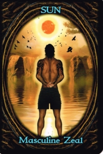 The sun symbolizes directness and focus, mostly upon a linear line. It breeds life into things that you have been manifesting and creating. This card represents a time of great strength, drive, and masculinity in you. You are blessed with a line of intense concentration straight to your dreams, desires, and wants. Life feels full, your energy has sky-rocketed, and things are just happening so fast. You are no longer loaded with self-doubt, uncertainty, distraction and fatigue. As this is a wonderful space for you to grow outwardly, be cautious of spending too much of this new vitality at one time. Let it sustain you throughout an extended length of time (maybe weeks to months), like a slow fiery burn. Your every move is powerful; it is your time to shine. Shine bright like the sun, dear wanderer, for as with all stars, there comes a dimming, so enjoy this time now. Speak with conviction for others are awaiting your words.