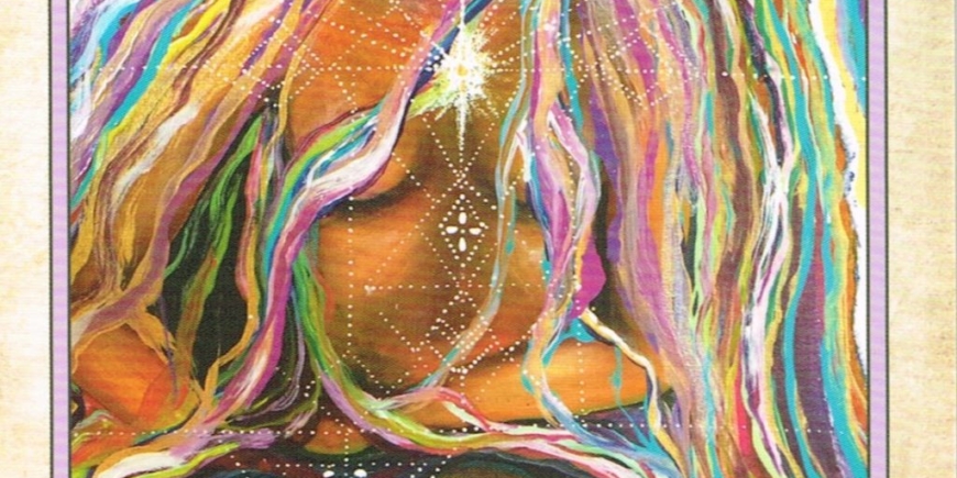 Now it is time to close your eyes and rest for as long as feels good. Whether you wish to meditate or sleep or just close and rest your eyes for a time, give yourself permission to do that now. You can begin that process by gazing at the image on the card for a moment, gently focusing on the light at the heart center of the Galactic Goddess and imagining, feeling, visualizing or pretending that you are stepping right into that heart light as you either zone out into sleep, rest your eyes or meditate, now.
