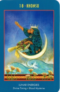 Khonsu brings spiritual nourishment to our bodies and soul. He knows the exactly timing in which we are ready to receive communion and “eat the flesh of the Gods” so that we may become as one of them. Khonsu work on our behalf to fertilize our mind and hearts with the seeds of our own divinity. He engages the power of the moon to bring forth the healing rains that cleanse our old belief systems, and he renews our DNA at a cellular level. He governs the tides of the oceans and human emotions. Khonsu is a great healer said to be able to exorcise demons. He does this by honoring, feasting, and celebrating the diseases, and they go away happy.