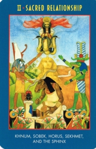 The master craftsman Khnum fashions the new human on his potter’s wheel. Horus and Sobek hold the tension of opposites and come into reconciliation and acceptance of each other’s gifts. Sekhmet offers her fiery, fierce compassion to transform the polarized heart so that forgiveness and sacred purpose can emerge. The Sphinx as the Earth altar conveys cosmic wisdom into the awakening heart.