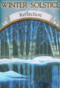 This image portrays a simple yet powerful representation of the winter solstice. We see a clear reflection of the snowy woods on the still, frozen waters of the lake. The blue tint drapes the scene with an even greater sense of quiet and solace, inviting us to walk very softly lest we disturb the intense yet gentle grace of this scene. The reflection of the trees on the frozen lake remind us that this is a time for us to go inside – to both our physical shelter as well as our internal world – and there contemplate the season that has passed, the season that is, and the seasons yet to come.