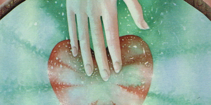 In this beautiful image, we see hands reaching toward each other through a heart. The green field surrounding them is the color of the fourth, or heart, chakra. It’s when we feel love in our heart center that we not only emit the healing energy of compassion, but we also attract love and compassion. Studies by the HeartMath institute reveal that the electrical signals from the heart are up to 60 times stronger than the brain’s, and the magnetic field is as much as 5,000 times more powerful.