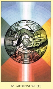 This card offers a view of nature as a medicine wheel and asks you to remember your absolute connection to nature and the continuous movement and flow of the seasons and the heavens. Viewing ourselves as separate from nature leads to our alienation and loneliness. You will find comfort and psychic protection in viewing time and circumstances as part of the natural progression of life.