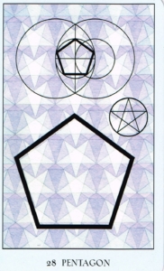 The pentagon is a five-sided geometric figure holding energy the represents power, excellence, regeneration, and transcendence. When the midpoints of each side of a pentagon are connected, they form a star. This shape, called a pentagram, is a symbol of power and protection in the Wiccan tradition.