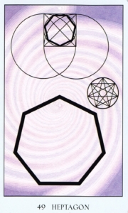 The heptagon is the seven-sided polygon of veneration. It represents movement through cycles. There are seven days in a week, seven chakras, seven rainbow rays, seven planets, seven seas, seven musical notes, seven stages of transformation…Seven weaves its way through mythology as Athena used the seven-sided symbol to weave her magical exploits. Sound and music are intimately connected to Sacred Geometry and the number seven, and through the harmonies created by music we are able to connect with the music of the spheres.