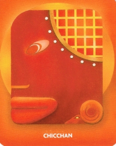 If you chose Chicchan, you are being asked to take a deep look at the issues of sexuality and intimacy. Drawing this glyph suggests that you desire to share your innermost self and that you yearn for a deeper connection and intimacy. If you are caught up in reactive or volcanic patterns of anger, be willing to look at how your desire for intimacy may not be fulfilled.