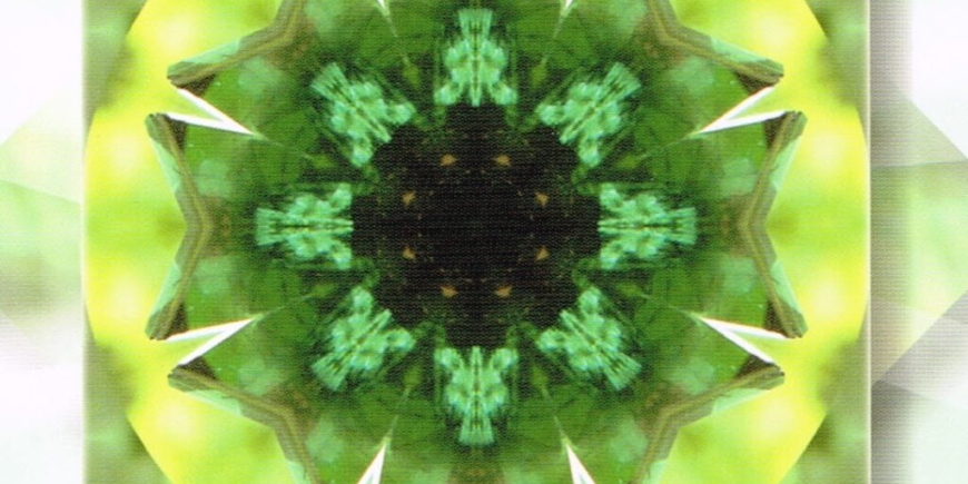 Its mandala is vast and appears to our eyes to be infused by a deep petrol green color. Complex geometric patterns spin and draw one into its center. Inside we are greeted by eight beings, the spirit of the Oversoul consciousness. They are delicate mossy green beings with vast wings, who invite us to follow them to a temple built from large pieces of Vivianite.