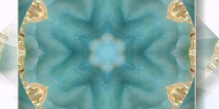 Six beings, reflecting the Oversouls’s consciousness, greet us with beautiful turquoise eyes that shine with curiosity. The beings indicate to us to follow them into the mandala itself. They guide us to its center where there is a six-pointed star of exquisite radiance. We are asked to turn around and surrender into the center of this star. As we do we breathe in deep turquoise rays that penetrate our being, relaxing our throat chakra and our mind.