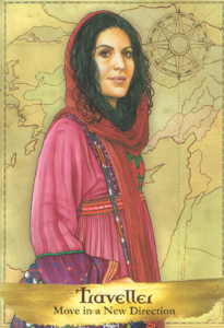 The Traveler card represents the gypsy spirit within. The opportunity to move in a new direction is coming your way and ancestral wisdom is encouraging you to welcome it with open arms. Going on a trip is an exciting process, because not only do you learn about the world, you also learn about yourself. This card often comes up when you have a chance to go through a process of awakening and understand even more about the amazing qualities you have to share with this world. Often such journeys can be lonely, but this in itself can teach you that you are never really alone and your angels and ancestors are there for you.