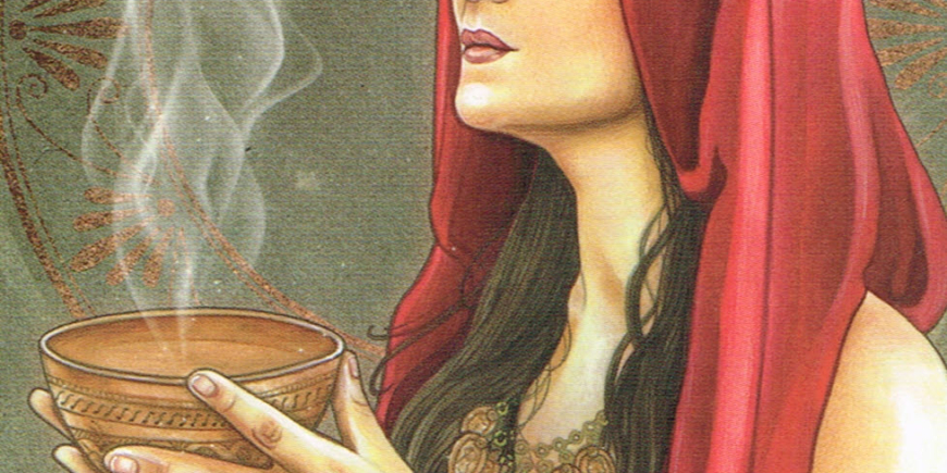 The Oracle is the truth-speaker and insight-bringer of this deck, the ancestor who will be your best outspoken girlfriend – someone who will tell you exactly what you need to hear to move forward. In this deck she is reminiscent of the Oracle of Delphi, a psychic priestess of ancient Greece who was able to receive information and make predictions. She holds a bowl that has sacred smoke rising out of it, bringing the message to look beyond all you can see and gather information in order to make an accurate evaluation of your current situation.