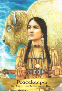 The Peacekeeper is a wise native American woman who has been influenced by White Buffalo Woman. She holds a peace pipe, which is emblematic of surrendering the need to fight and offering harmony instead. She is a soul who knows what it’s like to feel under threat and to stand up for what she believes in and what is right. Her medicine helps you to take the higher road in every situation, even if you’re under pressure to make a quick decision. It is a reminder that within your hands lies the power to make the right choice for all involved.