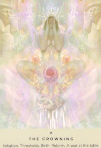 This is a card of crossing thresholds and walking through the gates of initiation, which requires great courage and faith. There are rolling contractions and it’s almost always not straightforward. As we transition from one thing to another we’re called to burst through the constraints of the seed and then the certainty of the bud, so that something new can bloom from within.