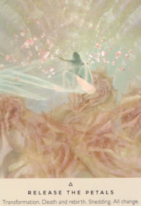 This is a card of change and transformation. Courage is required for the rebirth to happen. Abscission is the shedding of various parts of an organism, such as s plant dropping a leaf, flower, fruit, or seed. The rose hip knows, the phoenix does too, that we need to surrender to what was to the earth to one day be transformed anew.