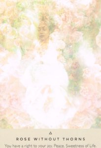However, there are a smaller number of roses that are unlike most, possessing few or no thorns, and that’s what this card is all about. The Rose without Thorns is an invitation to dive straight into the sweetness of your life. To rest in the softness. To enjoy the delicious fragrance, to rest in and relish what it means to be currently alive in this body. To embrace all the beauty and bliss that life has to offer.