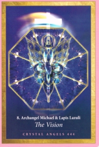I call upon the Crystal Angel of Lapis Lazuli and Archangel Michael who love me unconditionally. Thank you for the divine healing gift of vision. I open my heart and mind to the divine love that bestows all vision. I cast aside doubt and fear, limitation and expectation. I open my mind with absolute trust to receive the vision of my divine life purpose. According to divine compassion, mercy and grace, and through my own free will, so be it.