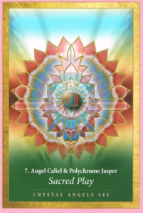 I call upon the Crystal Angel of Polychrome Jasper and Angel Caliel who love me unconditionally. Thank you for the divine healing gift of sacred play. I honor my disciplined nature and the strength of my commitment. I honor the need to balance this with freedom, spontaneity and joy. In opening to receive your gift of sacred play, I open my heart to the light and shine that light through my laughter. Through my own free will, so be it.