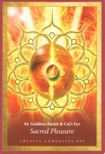 I call upon the Crystal Angel of Cat’s Eye and Goddess Bastet who love me unconditionally. Thank you for the divine healing empowerment of sacred pleasure. I ask for your healing grace through unconditional love to help me release any consciously or unconsciously held self-hatred, self-loathing and lack of self-respect now. I choose to offer up to the loving grace of the Universal Mother, any pattern or belief system connected to fear-based control and inhibition. I wish to love and respect myself, to be able to receive the sacred pleasure that is my divine inheritance. Through divine mercy and my own free will, so be it.
