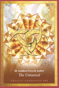 I call upon the Crystal Angel of Amber and Goddess Freya who love me unconditionally. Thank you for the divine healing empowerment of the untamed. May I drop the cages, constraints and conditions that breed fear and forgetfulness of my true nature. May I open to the untamed wild divinity in me that allows my life to happen in effortless harmony with the Universe. Through my own free will, so be it.