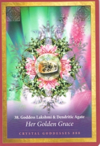 I call upon the Crystal Angel of Dendritic Agate and Goddess Lakshmi who love me unconditionally. Thank you for the divine healing empowerment of her golden grace. I open my heart, my mind and my soul to the generosity of your grace. I allow your gentle divine glow to flow unimpeded through me, opening me to receive and become a channel for your love to enter the world. Through unconditional love and my own free will, so be it.