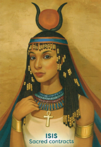 Isis (pronounced EYE-sis) was worshipped in ancient Egypt for over 7,000 years. Her devotees were prevalent throughout both the Greek and Roman occupations of Egypt and spread into the wider Mediterranean. She encompassed the magic power of all other deities, and therefore was known as “The Lady of Ten Thousand Names.” Isis played a central role as spiritual teacher and mother to the great leaders of the Ancient Egyptian civilizations. Within goddess spirituality she’s known to hold unique keys to sacred feminine power. Mary Magdalene was initiated in priestess magic under her tutelage. Queen Isis guards our sacred contracts to the Great Goddess. She helps us rise above past limitations to fulfill our soul’s deepest role on Earth.