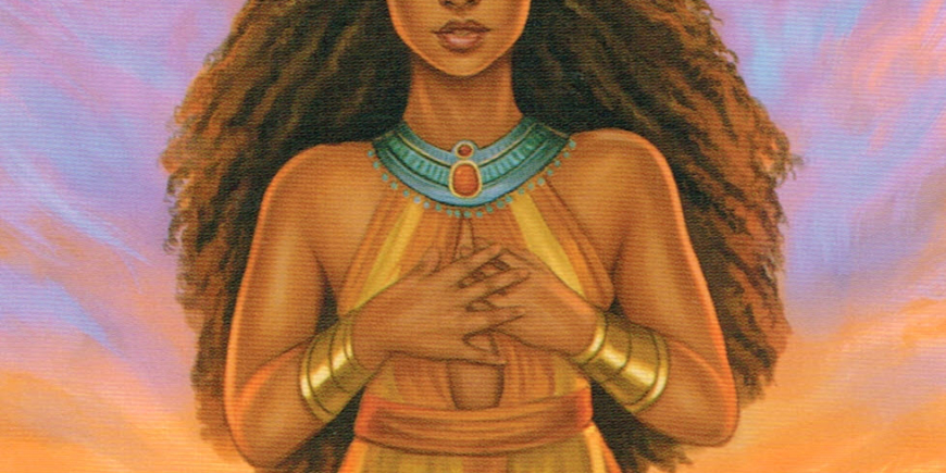 Beloved to the ancient Egyptians for over 3,000 years, Hathor (pronounced HAH-thaw) is a goddess of light, joy and gratitude. She was a guardian spirit of women and nourished the universe with her milk, including her son Ra. her temples were full of dancing, music and pleasure. Her symbols are the sun and moon, a lioness, a winged cow, a sycamore tree and a rattle used at celebrations. Queen of both the underworld and the sky, this multi-talented goddess manifested as the seven Hathors who appeared at a child’s birth and foretold its destiny. In goddess spirituality, Hathor presides over the Moon Temples: sacred gatherings that draw together ancient soul circles to receive divine downloads and worship the goddess.