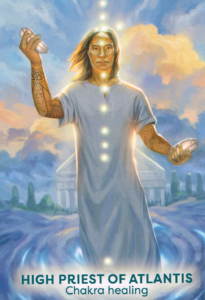 The Golden Era of Atlantis spanned 1,500 years and was a time of extraordinary spiritual energy. Atlanteans had 12 active chakras, rather than the seven chakras active in most people today. They used gifts of clear intuition, telepathy, sacred ritual and energy healing as a part of everyday life. The High Priest is an Atlantean Master of crystal, sound, color and chakra healing.