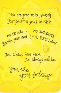 We can develop a poor habit of giving our power away to others, particularly if we have a fear of others’ ill treatment or judgement of us, or if we judge others to be better, wiser, kinder, and so on, than us. Our solar plexus contracts at the prospect of being hurt or rejected, and the greatest injury may come from the belief that we are separate. This is a reminder that you are here and you belong. Acknowledge your differences to others, celebrate them; give yourself permission to be “all that you are”. Harness the courage of the lion, and stand your ground like the bear. There is enough space for every one of us. Banish your fear, and shine your light as you fully embrace your individuality.
