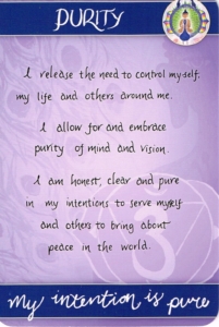 When we purify our mind and body, we allow more light to permeate our being, which both leads to and requires surrender, softening, and release. Your need to control (otherwise known as keeping yourself safe in this world) may be getting in the way now of purifying harsh energies that are ready to be transmuted. It is safe to let go of control and purify your surroundings, body, mind and intentions. Perhaps detoxification of negative energy or environmental toxins is required to help you with this next step of development.
