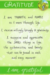 Action: Align with the beliefs on the card. Make your gratitude list- at least 10 things you are grateful for- every evening before bed for 21 days. You could make this a beautiful, life-long, daily practice. Tell someone “thank you” today.