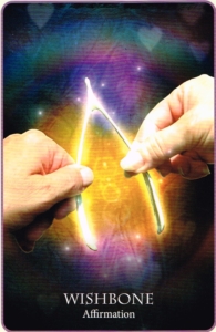 This card marks new life, whether it comes in the form of a long awaited baby, a new venture or a great change for the better. It signals the perfect time to birth new ideas and restart projects that have been stuck in the pipeline. This is a very fertile time for you, so get your creative juices flowing and focus on all you would like to bring about. Keep your thoughts positive and see the best in ( and for) yourself. To ensure the magic of the wishbone blesses your hopes for a new life, say daily affirmations for all that you wish for and all you desire to be. The time is right, and your success is assured, so breathe renewed energy into all that has been waiting to come into fruition.