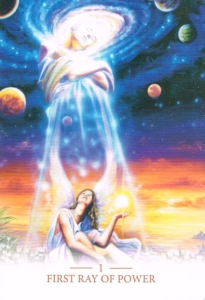 The First Ray of Power is energy of conscious destruction. It can be used in a healthy way to eliminate the past and allow for a fresh start. The First Ray also carries the frequency of leadership. It can assist you to stand in the truth of your light so others can find their way by it. It helps to strengthen your will power so you can accomplish any task you choose. The Ascended Master El Morya brings you his particular blessing and encourages you to believe in your own strength and take the initiative on what matters most to you.