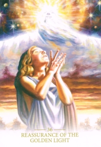 There are times when you will call upon the Golden Light because you know that you are in need of that loving consciousness, and it is appropriate that you do this. You can use the invocation below. There are times, however, when you will just feel, sense, see or know that the Golden Light is being given to you as a spiritual gift from the Universe. Such is the case, now, as you have been drawn to this oracle. You are being asked to just feel peace. Trust. Know that everything is working out perfectly, and you don’t have to worry – even though you don’t know why you should possibly feel that way! The Golden Light is wisdom and love. It knows, and sometimes that’s all you need to know in order to be at peace.