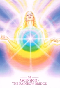 This oracle brings an additional message from Spirit. Hold on! Ascension can be a wild ride! Anything is possible. The past is not an indicator. The future is not set. This is a moment to cultivate your deepest feelings of spiritual love and peace. Simply allow the genius of life to flow through you in whatever way it chooses. During ascension, your life can change quite dramatically. The rainbow bridge empowers us to rise from one reality into another. Even if your outer world doesn’t change radically, internally you will feel as though you are a living a different life. Eventually, the physical world changes will follow. Enjoy crossing the rainbow bridge into new consciousness, dear one. You have everything you need. You are ready for this. It is meant to be.
