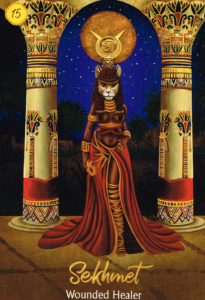 Sekhmet is the fierce ancient Egyptian goddess of war, the sun, and healing. She carries life force in her palm, with the power to create and destroy.
