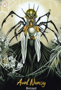 Embodiment: Betrayal is a web that disrupts everything you thought you knew. use discernment in your relationships. Betrayal makes it difficult to trust. But without trust, your relationships are a lie. Trust that no matter what happens and no matter how long it takes, you will survive and thrive.