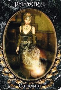 Archetypal “gifted one” of Greek origin and created by the gods as the first mortal woman, she was “gifted” with many objects and talents, including a box. Though she released the lid and unleashed all sorts of disease, plague, and misery upon the world, Pandora got the lid back on just in time to save hope, but the cycle of death and rebirth had already been established on earth.