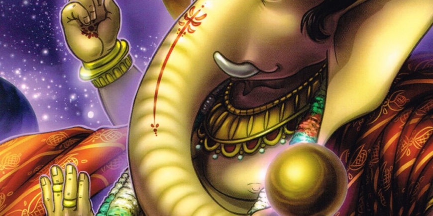 Ganesha is pointing to the Heavens and encouraging you to be open to new ideas and the growth of your spirit. Listen to the still small voice within.