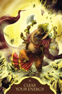 One of the many daily challenges is clearing unwanted, lower vibration energies from within your physical body, your aura, and your personal environment. How do you cleanse and balance your energy in order to align with your divine purpose? You may choose to balance your chakra energy centers by taking a much needed break or stepping outside for fresh air. Consider taking a sea salt bath, and also use incense or white sage, or essential oils such as lavender, clove, or basil to clear your home. Regular meditation will provide the stillness needed to ensure you clearly hear messages that are being given to you and will also assist in bringing a greater sense of calm to your life. Remember to call on Ganesha. Ask him to walk alongside you and show you what you would benefit from clearing away.