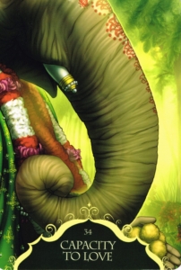 Ganesha’s trunk represents the ability to consider how you are perceiving this situation which is significant in your spiritual growth. An elephant’s trunk is an important appendage that is used in its day-to-day functioning – it serves to remove trees and other large obstacles as well as for more fiddly tasks such as breaking open fruits to eat. An elephant has the capability to handle a range of tasks from minute ones to those requiring great strength. In this way, Ganesha’s trunk is an emblem of his great intelligence and his extraordinary capacity for love. Rely on your own vast array of abilities to tackle your problems and know that Ganesha is supporting you in this process.