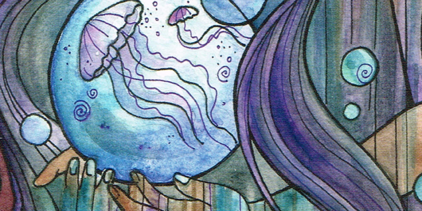 Find a place where you can sit or lie down quietly. Close your eyes and calm your mind and body. Take seven deep breaths, and on the last exhale, hold your breath for 10 seconds. As you gently allow sacred air to enter your lungs, envision yourself floating on a never-ending ocean, glittering and swirling like a galaxy beneath the waves.