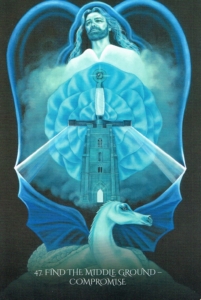 In the beginning, belief systems based on earth energies and orthodox religion had a synergistic relationship, but the relationship became more and more divided through the ages. The polarized “I’m right, you’re wrong” way of thinking has left us in a world of chaos and war. Archangel Michael looks out over the world from Glastonbury Tor in hopes of seeing some conflict resolution. He has no interest in slaying the dragon. His sword of truth and his commitment to the human race are both firmly anchored into the earth, while the mother dragon, representing Gaia, nurtures her egg inside the hill. The egg is cracking, giving notice of the birth of a new reality.