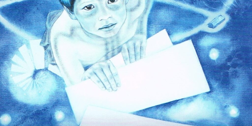 The painting of the Shaman’s Celestial Journey is set in Suriname. It is about the stages of preparation a boy must go through to become a shaman of this tribe. Many are trained, but few pass the initiations. The purpose of the vision quest is to speak with the spirits and return with information needed for the tribe. First, a sacred space must be created. The master teacher will then appear and instruct him about the spirit world. The initiate climbs up the spiral ladder into the sky, going higher and higher as mastery progresses. When his psychic ability is acute and developed enough, Grandfather Vulture will act as an intermediary for the great Grandfather Spirit or Creator. Spirals were often used in the temples of many ancient cultures as teaching tools representing the spirit world. In recent times, they have been found to be useful in going in and out of lucid dreams.