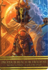 It takes great trust but is you allow Osiris to help you, you will realize that letting go, rebirth and growth is realty possible. You may experience grief, anger, fear, freedom and a sense of relief or a combination of these feelings as you move to let go and allow proper burial to take place. Do not be afraid of any of these feelings for they will pass naturally when allowed to just flow. These feelings will actually fertilize new life and allow you to become more of who you are in truth.